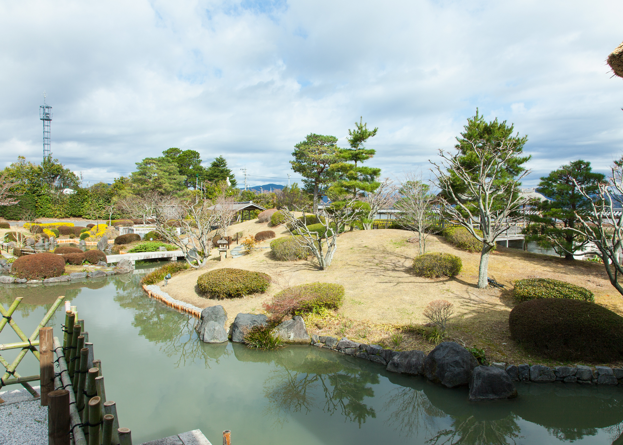 静岡県島田市の「ふじのくに茶の都ミュージアム」には、小堀遠州の伏見奉行屋敷にあった茶室と、遠州が親交していた松花堂昭乗のために建てた八幡山滝本坊の書院、そして仙洞御所の東庭が、史料に基づいて復元されています。
