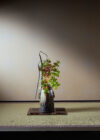 木豇豆は、よくみられるものよりも大きい種で、東北地方で手に入れたものです。冬の厳しさを表現し、一方寒菊の赤・黄・緑のグラデーションが温かみを感じさせてくれています。