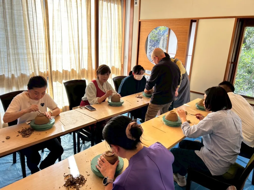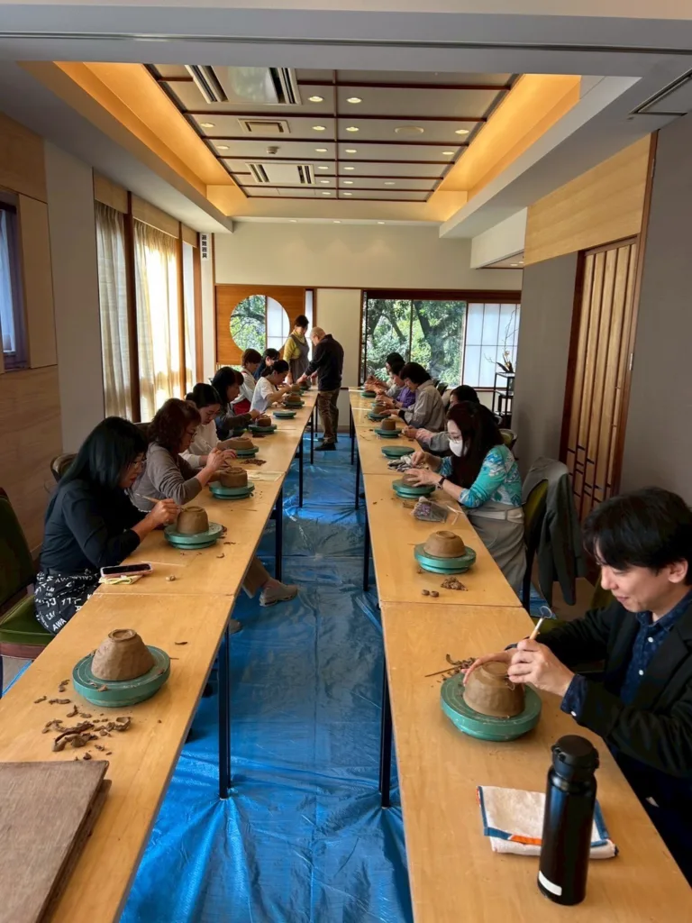 また、遠州七窯の一つである志戸呂焼より、青嶋利陶先生をお招きし、陶芸教室も実施しました。